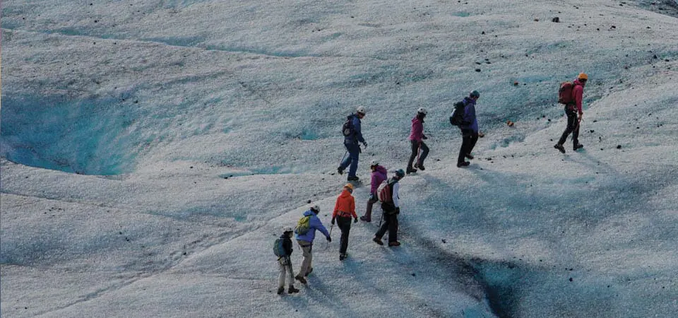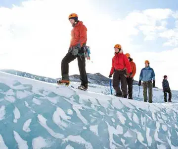 This is an informative and easy glacier walk on Sólheimajökull glacier. There will be a certified and experienced glacier guide that will lead you through a frozen wonderland of different shades of glacier ice. You will take a light hike up to the glacier and spend about one hour on the ice. What you need to bring: Warm clothes (first layer), Waterproof outdoor clothing (second layer), Hiking boots, gloves, and a hat. Provided on location: Glacier Gear and other safety equipment. Note: Jeans are not recommended for glacier activities. Once it gets wet, it takes a long time to dry, leaving you cold.