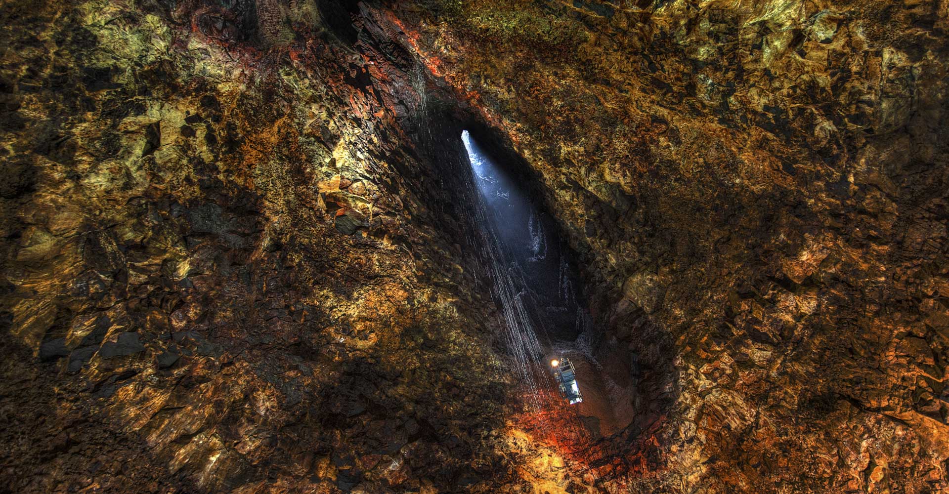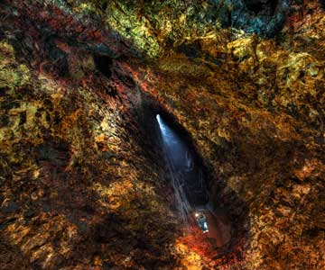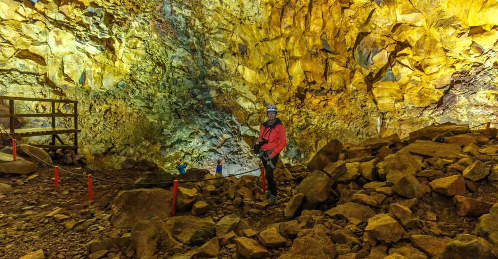 Descend 120m /400ft in a open cable lift through the top crater and down to the ground floor of a dormant volcano called Thrihnukagigur which last erupted over 4,000 years ago, located about 30km from Reykjavik. This is a truly unique experience that will take you to the bottom of the volcano magma chamber that once was filled with steaming hot lava.