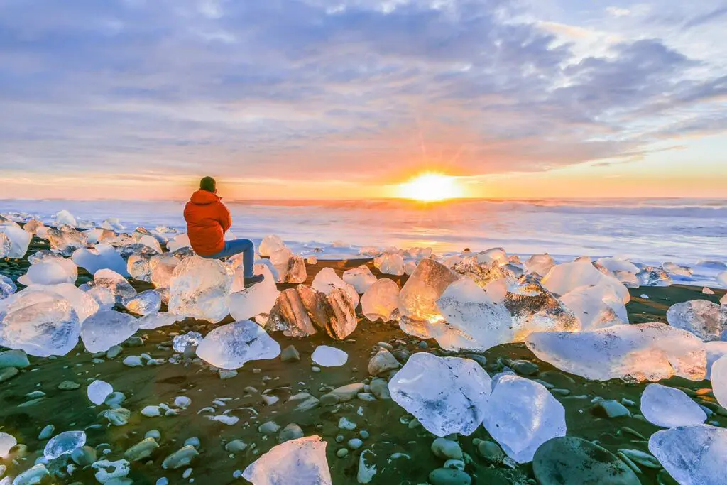 The Diamond Black Beach is near the Glacier Lagoon, and the strip of black sand belongs to Breiðamerkursandur. It’s called the Diamond Beach because the chunks of the glacier, lying on the black sand, resemble diamonds in the gleam of the sun. These icebergs come from the melting of Vatnajökull Glacier. The ice falls into the Glacier lagoon and gets carried away into the sea. The Atlantic Ocean waves carry them to the shore of the beach. Due to global warming and the rapid melting of glaciers, the uniqueness of the site is expected to vanish. The shore is the home to the many seals, and they’re often spotted relaxing on the iceberg tips. From the tourist’s perspective, Diamond beach is safe as the ocean currents are mellow. But they should not try to climb up the icebergs as there are chances of it flipping and trapping the hiker into the sea. If you want to experience the wonders of the Glacier Lagoon & Diamond Beach, check out some of our luxury tours where you can see them up close. We would also be happy to create a personalized private tour that will take you to the Glacier Lagoon & Diamond Beach.